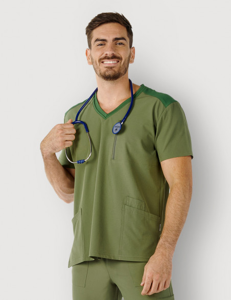 Elle convient parfaitement aux kinés, ostéopathes, vétérinaires, ainsi qu'aux dentistes. Disponible en 4 couleurs avec empiècements ton sur ton elle s'accorde avec le pantalon médical homme Harry pour un uniforme médical hyper stretch avec une liberté totale de mouvements.