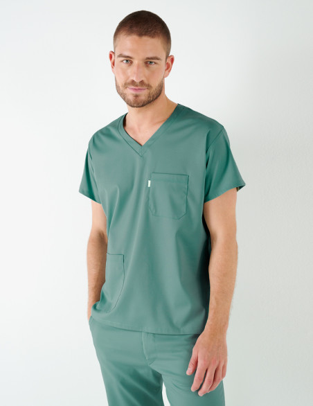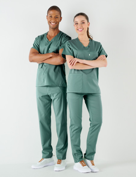 Rio reprend la ligne de la blouse Jules en la déclinant en textile Beliocel dans les coloris blanc, noir, olive, sauge, et beige. Particulièrement adaptée aux dentistes, assistantes dentaires, vétérinaires et kinésithérapeutes, ce modèle unisexe unifiera vos équipes avec élégance et confort. À accorder aux pantalons de la collection Beliocel India pour les femmes et Malo pour les hommes