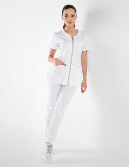 Blouse médicale 3 poches à fermeture zippée - Parements et zip gris clair pour l'ensemble des coloris sauf pour le coloris beige (parements et zip couleur blanc)